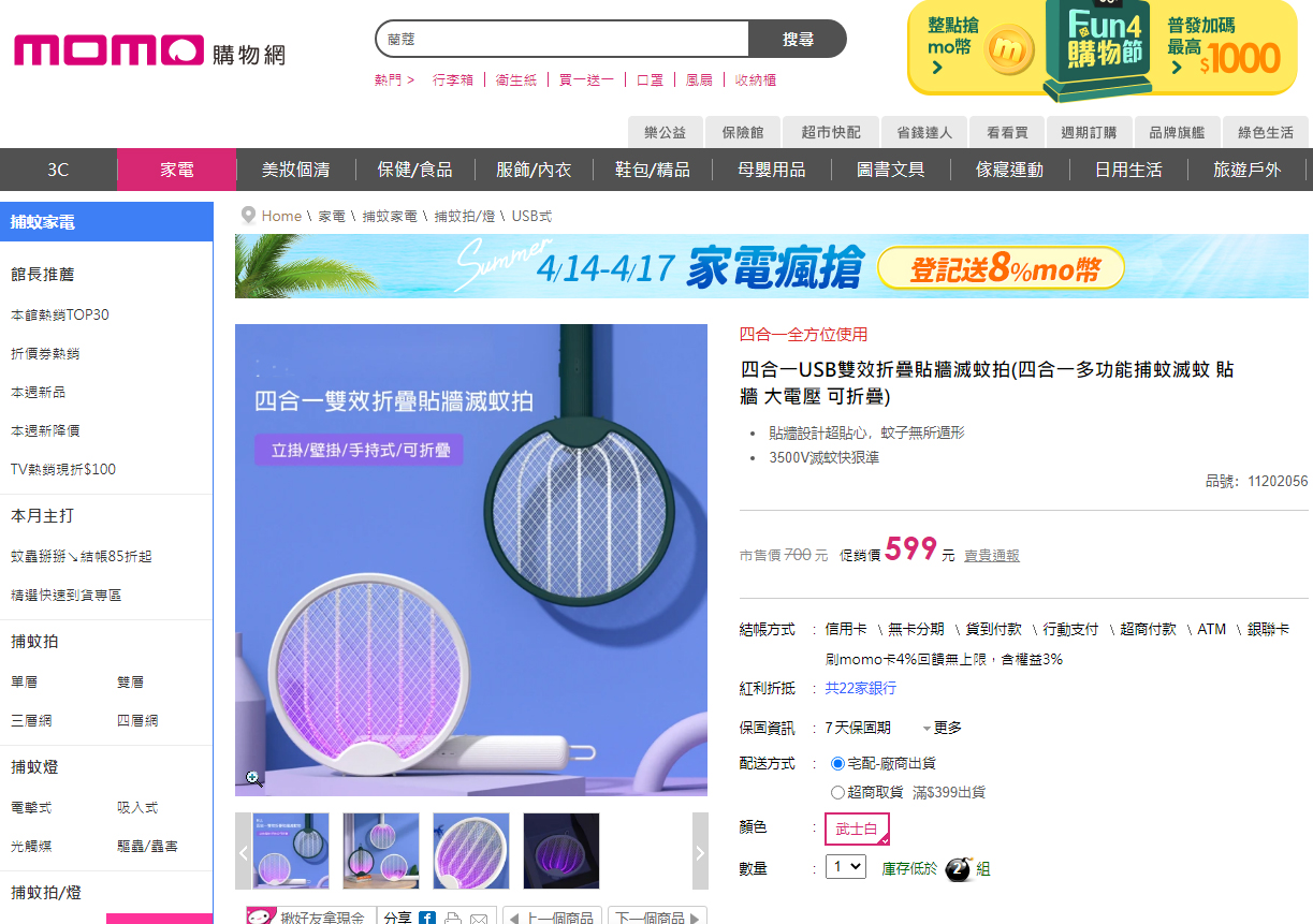 2939 【四合一】USB雙效折疊貼牆滅蚊拍/捕蚊燈