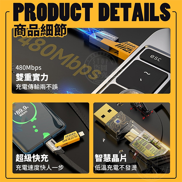 * 更搭載多個接頭,一線滿足您各種需求,讓充電體驗更加便捷!