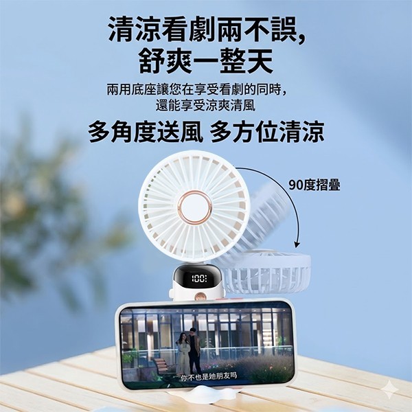 - 追劇神隊友:專利兩用底座,風扇變身手機支架,邊吹涼風邊看劇,舒爽一整天!