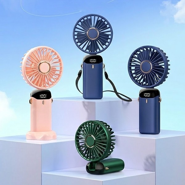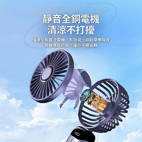 - 90度摺疊變換:可手持、可立桌,甚至能掛脖(解放雙手!),隨心所欲調整涼爽角度。