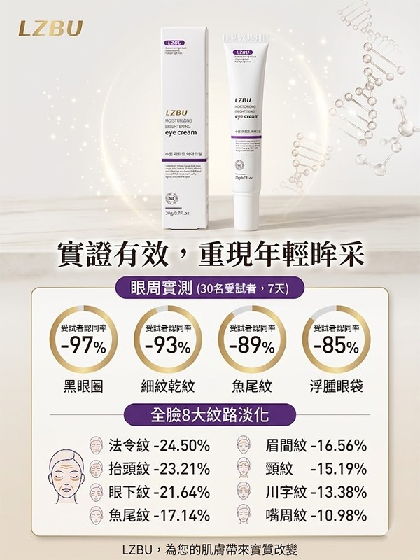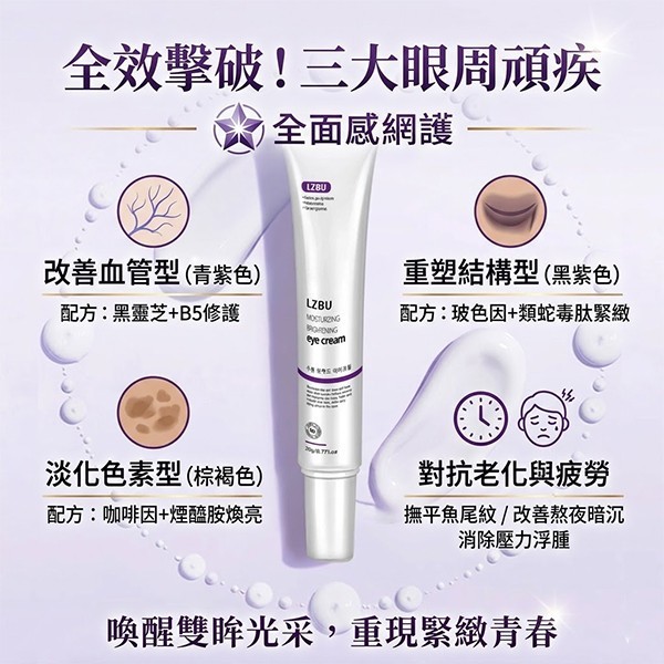 。全方位改善:不僅淡化細紋,更改善暗沉,抗浮腫,讓眼周肌膚重現年輕光彩