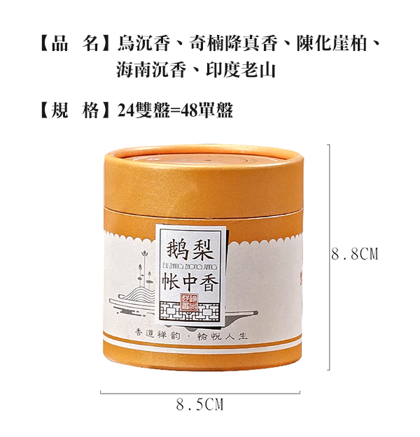 每盒有48盤,選用天然香料製成,