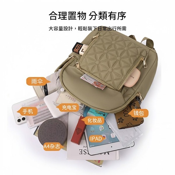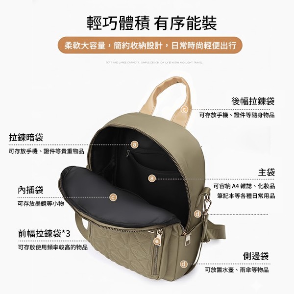 【經典質感】:精緻菱格縫線,搭配全新「卡其色」防潑水面料,耐看且實用。