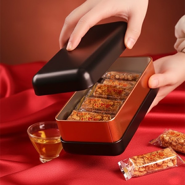 - 美感包裝: 沉穩黑金配色,是零食也是桌上的藝術品。