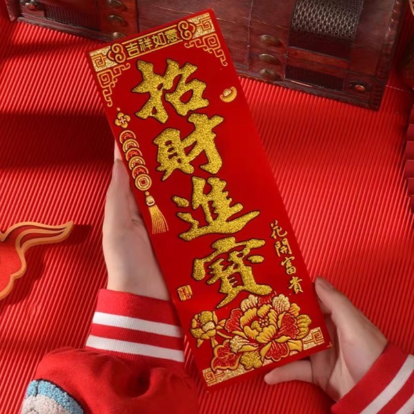 - 立體燙金絨布春聯,手感視覺雙重頂級!