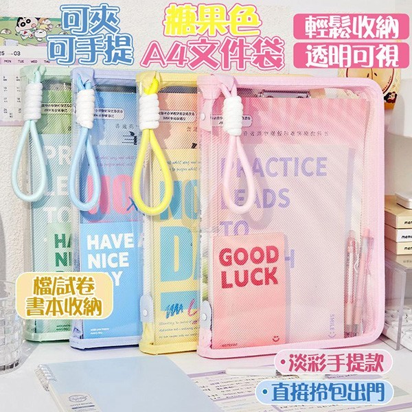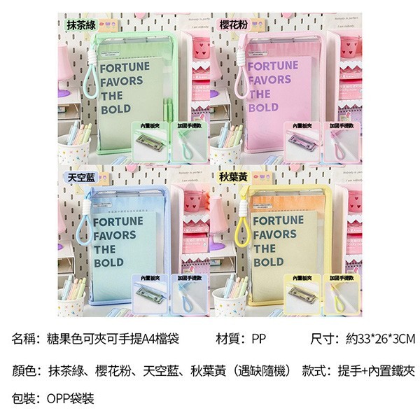 7729 可夾可手提糖果色A4文件袋