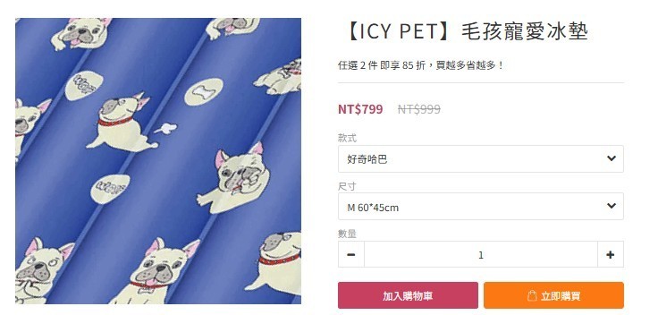 8片以上 50元/片 市價:799元/片 - 毛孩救星!瞬涼凝膠冰墊 | 一躺有感降溫 -5°C - 夏天對毛孩來說簡直是酷刑!? 看著牠喘氣喘不停、皮膚紅通通?你需要的是這塊「降溫神器」! - 瞬涼黑科技: 採用瞬涼凝膠材質,一躺就有感。 - 物理降溫 -5°C: 涼而不冰,持續吸熱,給寶貝最清爽的夏天。 - 家長最省心: 防水防潮材質,髒了直接清水沖洗,快速晾乾。 - 耐用度滿分: 加厚布料,耐抓耐磨,不怕調皮搗蛋的指甲 - 尺寸:60X45公分 - 款式隨機出貨