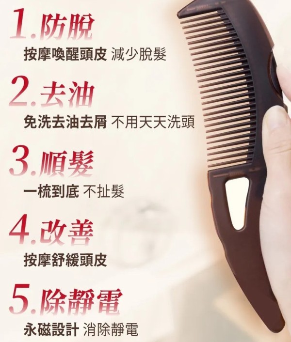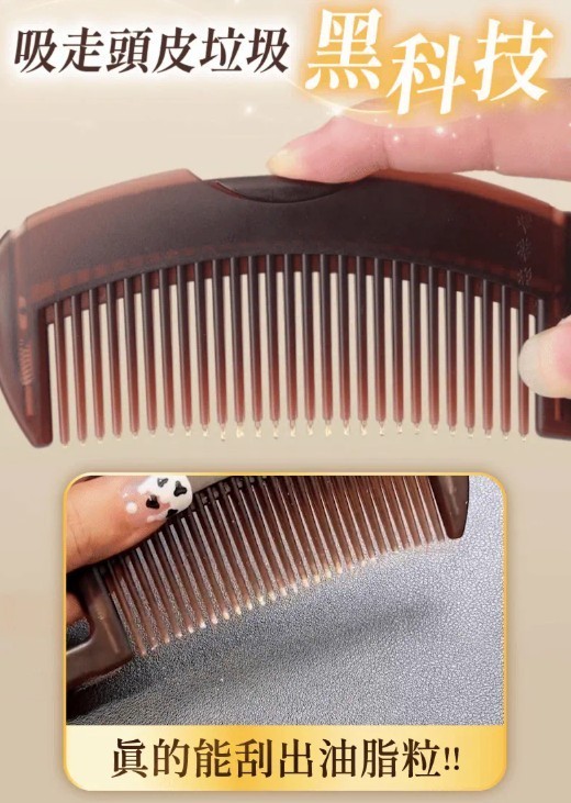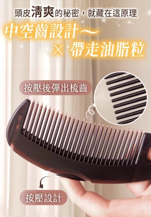 - 「吸油」技術: 梳齒設計能深入髮根,吸附油脂粒,改善油膩感,讓頭髮恢復清爽。