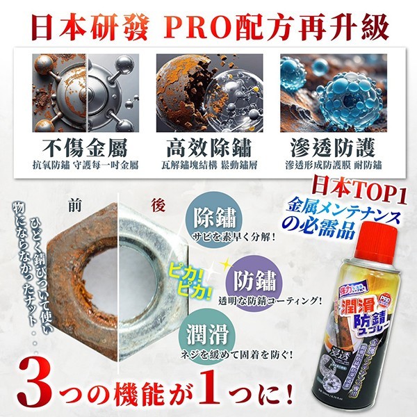 【3合1極效配方】 潤滑+除鏽+防鏽一瓶通通搞定!