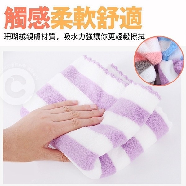 - 珊瑚絨親膚材質吸水力強讓你更輕鬆擦拭