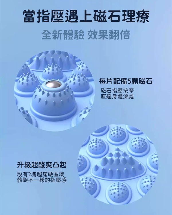 - 結合立體浮點按摩、磁石療法與防滑設計
