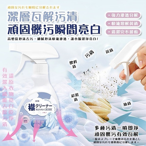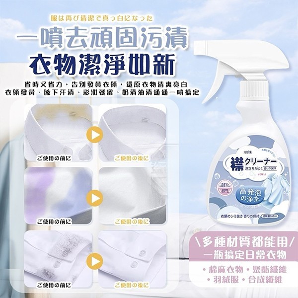 15瓶以上 $25元/瓶 - 高密度泡沫去污 細膩泡沫快速滲透,深入纖維、溶解污漬、去黃去汗,讓衣服潔淨亮白 - 溫和配方更安心 不傷衣物、不傷纖維、護手護衣,清潔同時呵護衣服 - 一噴去污|衣物潔淨如新 告別發黃衣領,還原衣物清爽亮白 - 多種材質都能用。一瓶搞定日常衣物 - 容量:360ML 【下單前:務必"詳閱購物須知,下單視為接受"購物須知"內容】 【下單不保留商品,要結單請主動與客服聯繫】 【公司提供多種下單管道,庫存數量僅供參考,實際數量請洽小幫手】