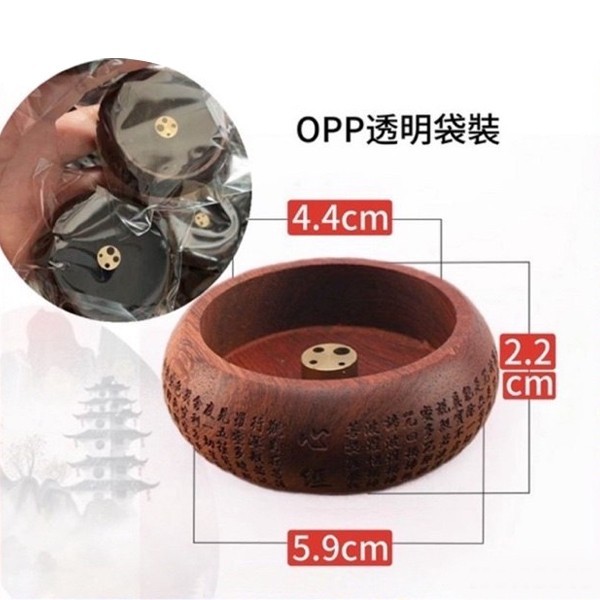 【心經雕刻線香爐】四孔銅芯 ‧ 實木打造