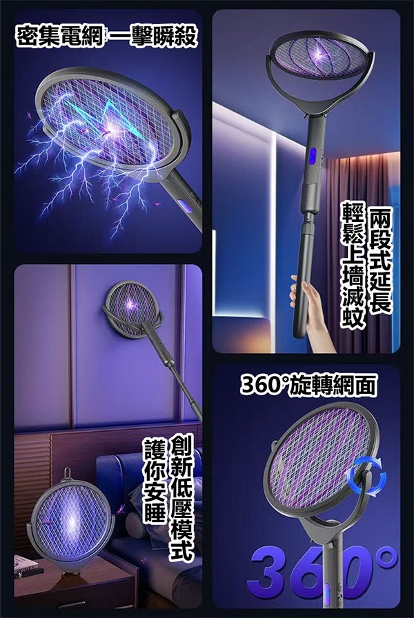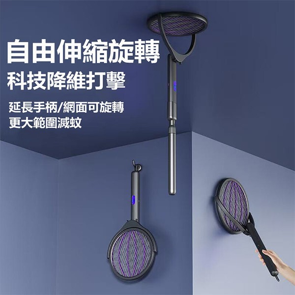 兩段式自由伸縮,搭配 360°旋轉網面,不管是牆角還是天花板,輕輕一貼,蚊子瞬間灰飛煙滅。