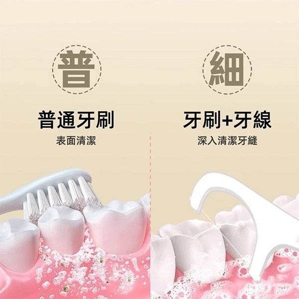 特殊 細滑 處理技術,滑入齒縫順暢無阻、不易卡牙,清潔過程舒適不傷牙齦。