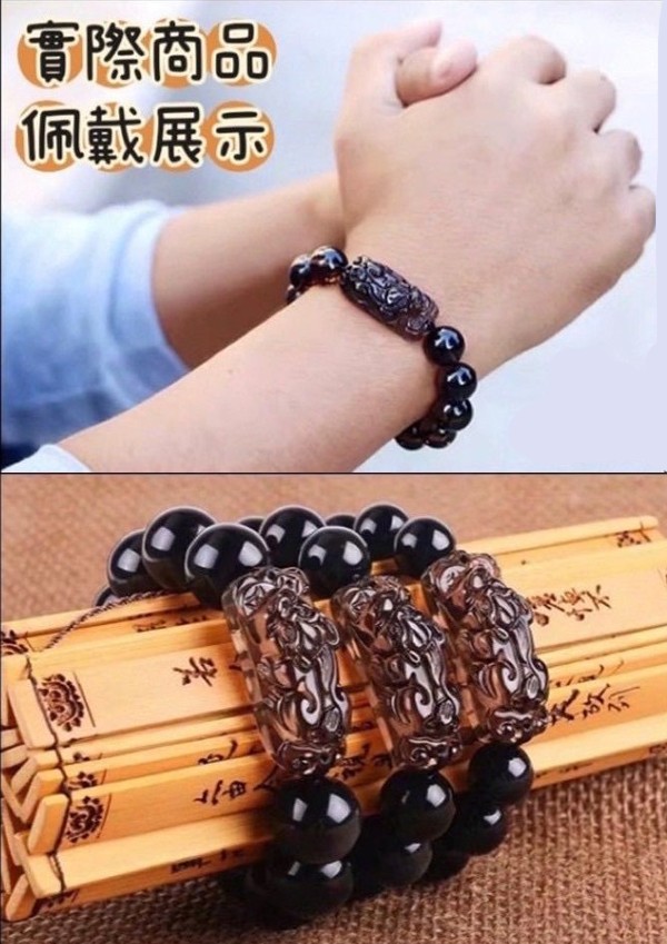 【財運亨通・守護隨行】天然冰種黑曜石貔貅手鏈