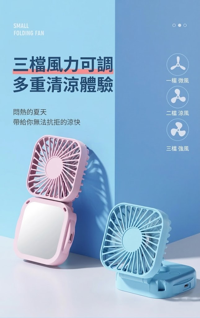 7962 化妝鏡方形摺疊風扇