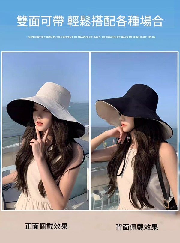 8頂以上 $52元/頂 - 【雙面可戴】抗UV大檐防曬帽,防曬修容一頂搞定! - 加寬帽檐: 360度全方位遮擋紫外線,保護臉部與頸部。 - 修飾臉型: 專為亞洲女性設計的版型,柔化臉部線條,視覺瘦臉。 - 附防風繩: 海邊風大也不怕,騎車外出更安心。 - 正戴: 簡約高級,自帶法式優雅感。 - 反戴: 撞色點綴,甜酷女孩隨意切換。 【下單前:務必"詳閱購物須知,下單視為接受"購物須知"內容】 【下單不保留商品,要結單請主動與客服聯繫】 【公司提供多種下單管道,庫存數量僅供參考,實際數量請洽小幫手】