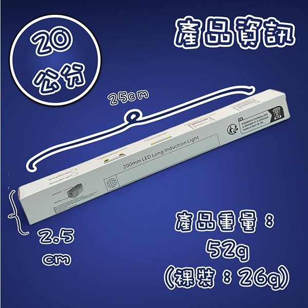 - 20 公分 (大範圍照明,適合衣櫃、廚房流理台)
