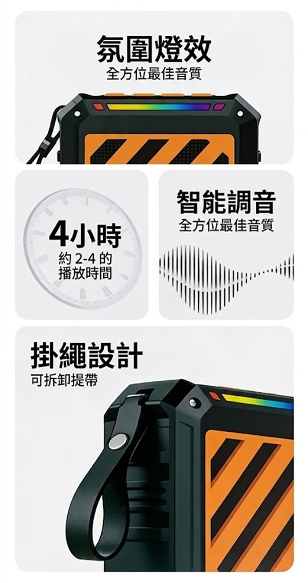 附贈高質感可拆卸提帶(掛繩),隨手掛在背包、單車或帳篷上,輕巧設計讓你感受「零負擔」的音樂隨行。