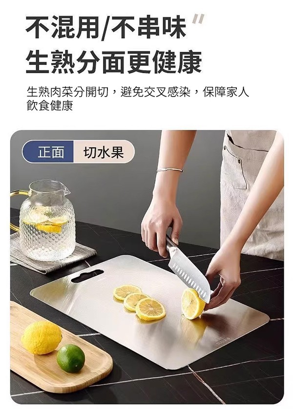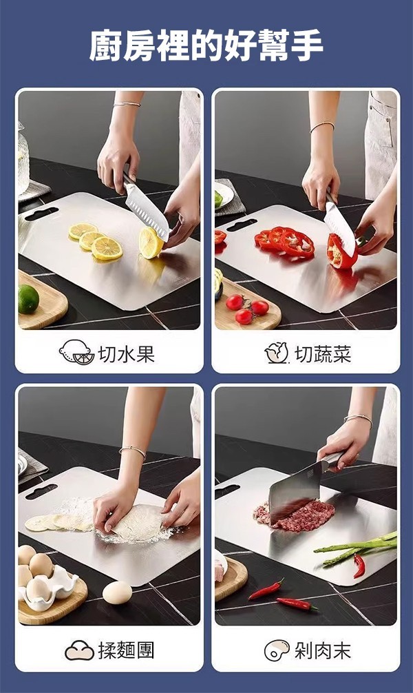 ✅ 輕薄堅固 ➝ 不鏽鋼材質耐刮不易變形,比木砧板更好清洗