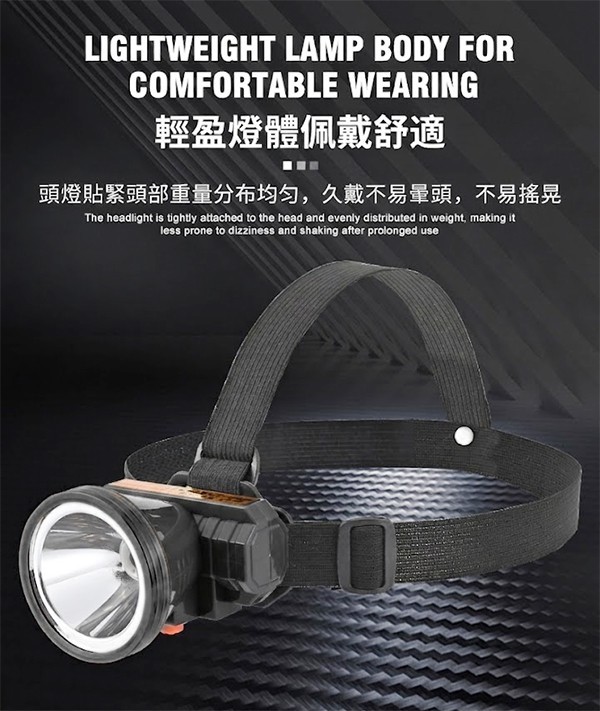 - 羽量化設計: 輕盈燈體設計,搭配人體工學舒適頭帶,