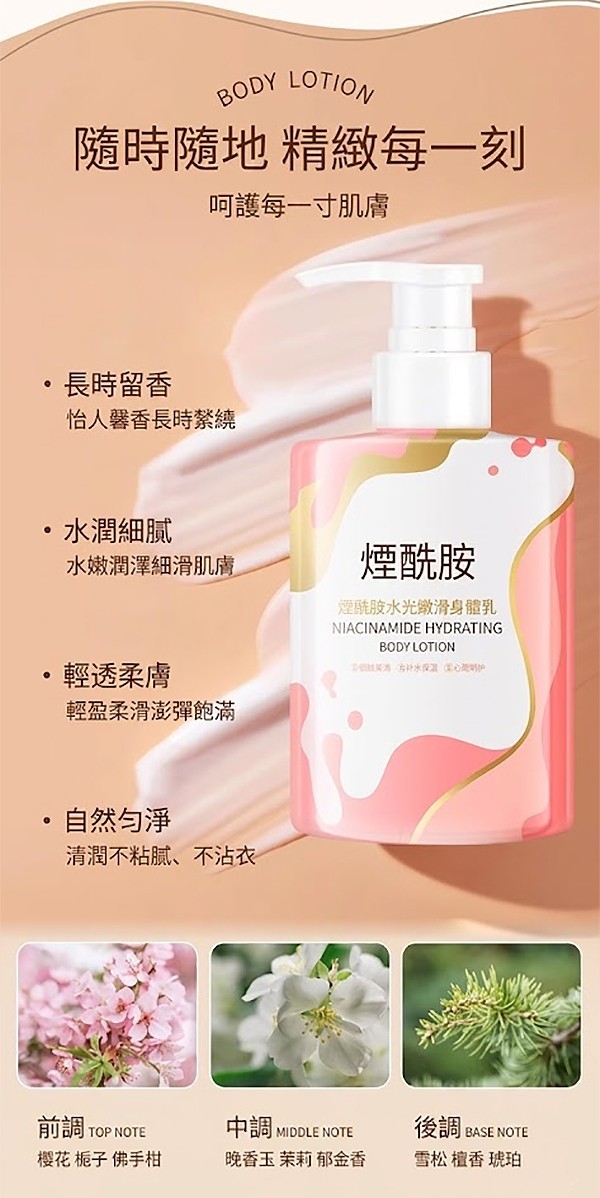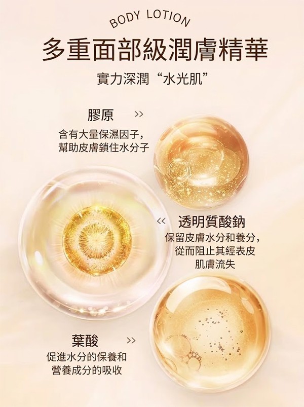 - 清潤不粘膩,不沾衣。日用香氛,嫩滑肌膚。