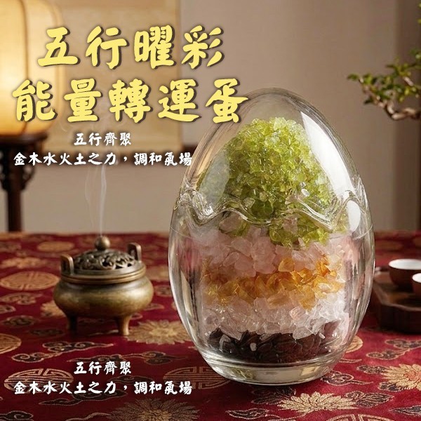 「五行曜彩能量轉運蛋」精選天然五色晶石,