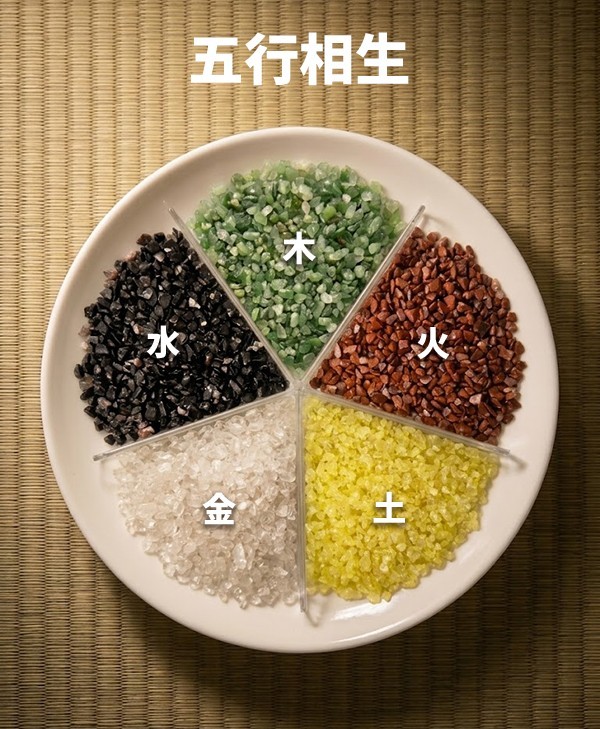五行能量調和: 集合金木水火土五種碎石,平衡空間氣場。