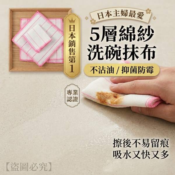 【日系家事革命】5層加厚純棉紗|吸水怪獸級抹布|油汙一擦即淨不留痕