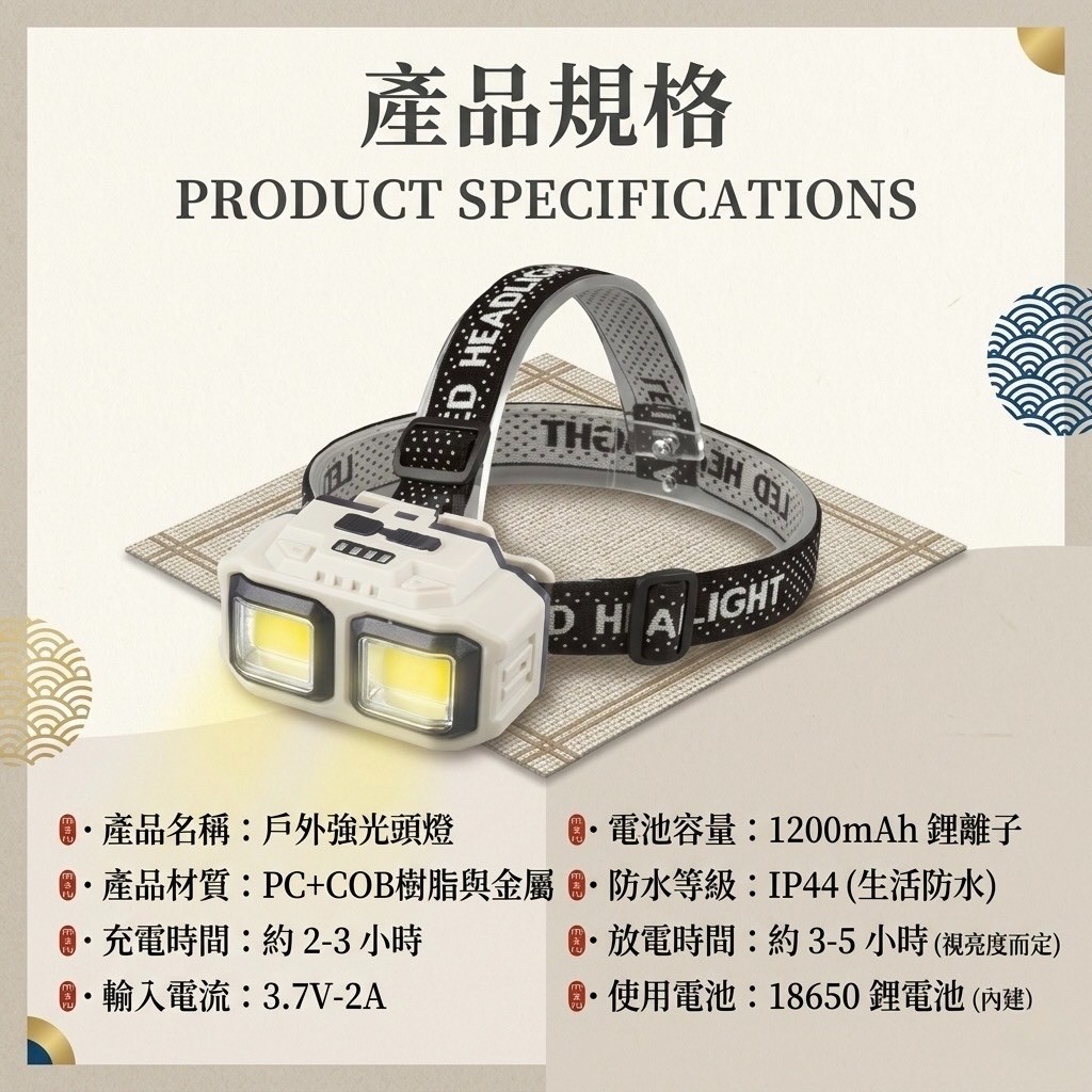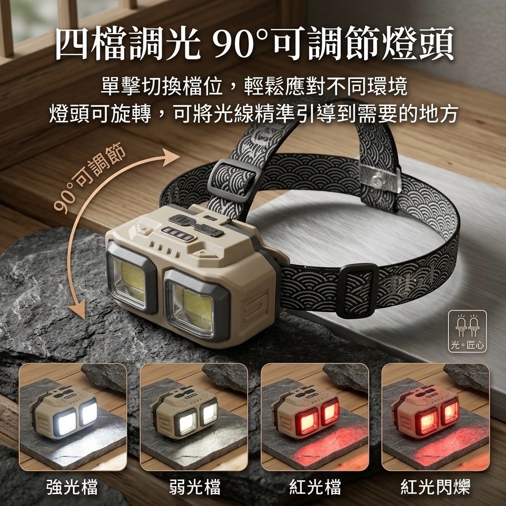 地表最強雙核爆亮頭燈!18650神級續航,夜釣、露營、工安必備,IP44無懼風