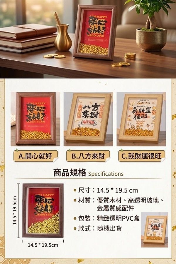 14.5 * 19.5cm 的黃金尺寸,精緻木紋邊框,