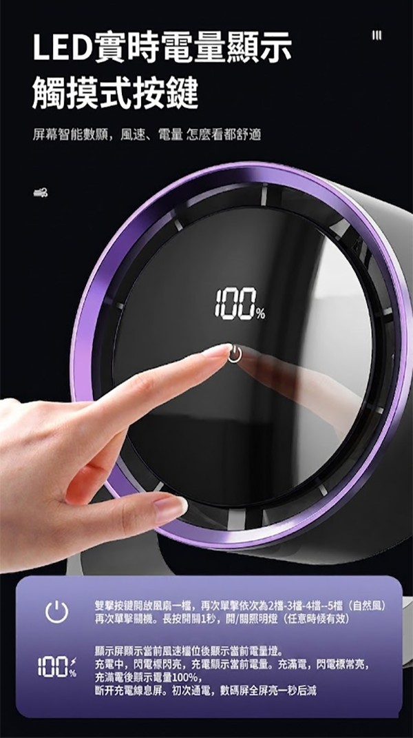 - 精準掌控: 配備LED實時電量與風速數顯,五檔風速一鍵隨心切換,告別電量焦慮。