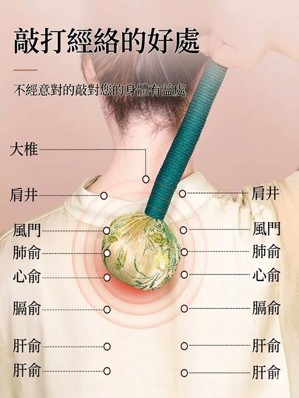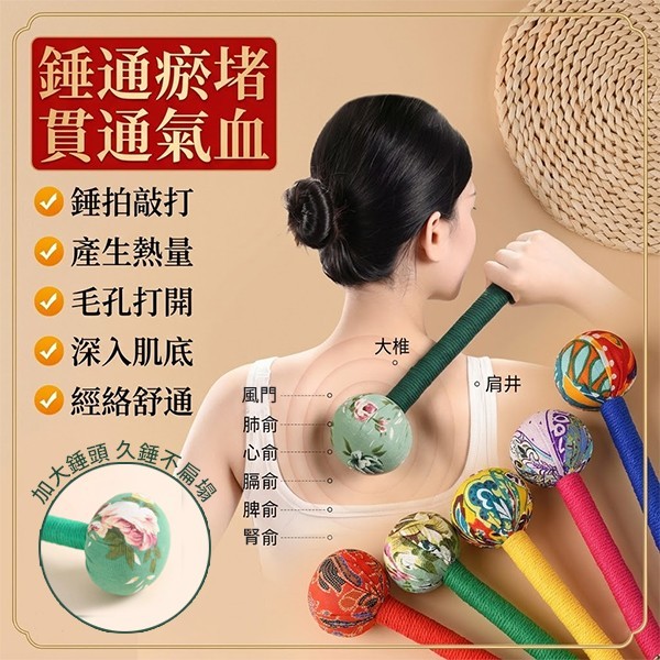 - 陳年艾草填充:隨著敲打散發淡淡草本清香,溫通經絡,幫你趕走體內的陳年濕氣。