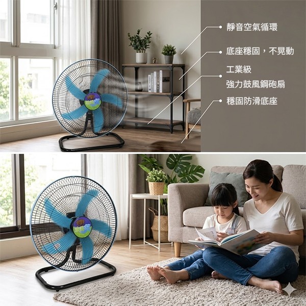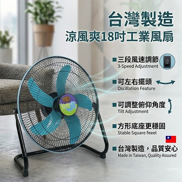 - 18吋大風量: 工業級鋼砲設計,廣角送風無死角。