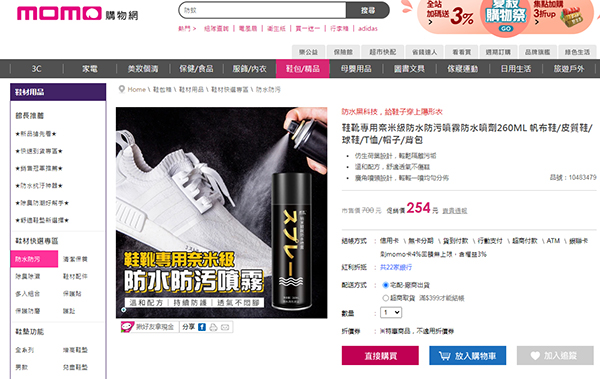 ◼ 這款長效防污防水噴霧劑,利用奈米科技,解決您雨天出行的煩惱