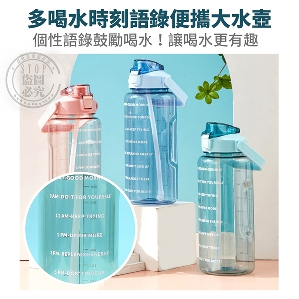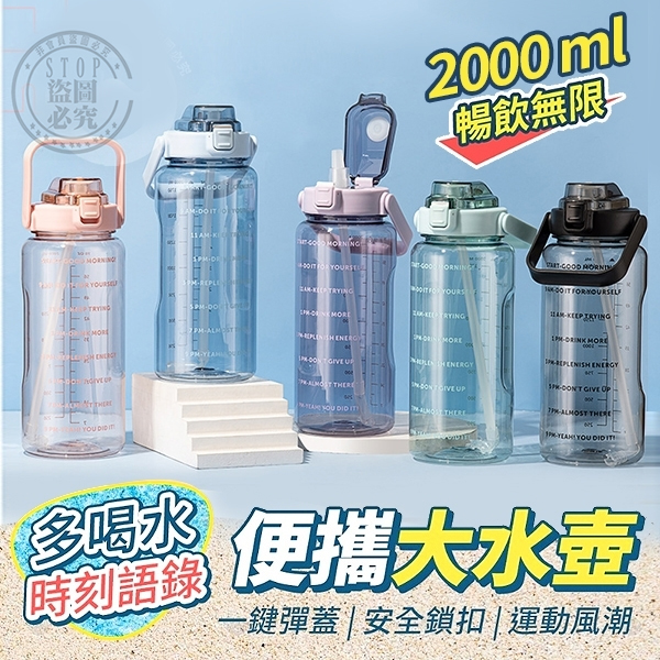 2182【夏日必備】 大容量 彈蓋式吸管水壺-2000ml