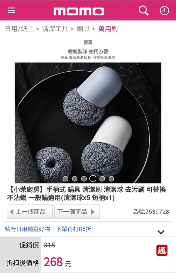 18顆以上 $25元/顆 市價:268元 * 奈米纖維清潔刷 * 圓潤手柄設計搭配 * 可拆卸式替換刷球 * 握持舒適 造型可愛 * 一物多用 輕鬆刷鍋 * 去鍋鏽 水槽 灶台等 * 粉、藍 (隨機出貨) 【下單前:務必"詳閱購物須知,下單視為接受"購物須知"內容】 【下單不保留商品,要結單請主動與客服聯繫】 【公司提供多種下單管道,庫存數量僅供參考,實際數量請洽小幫手】