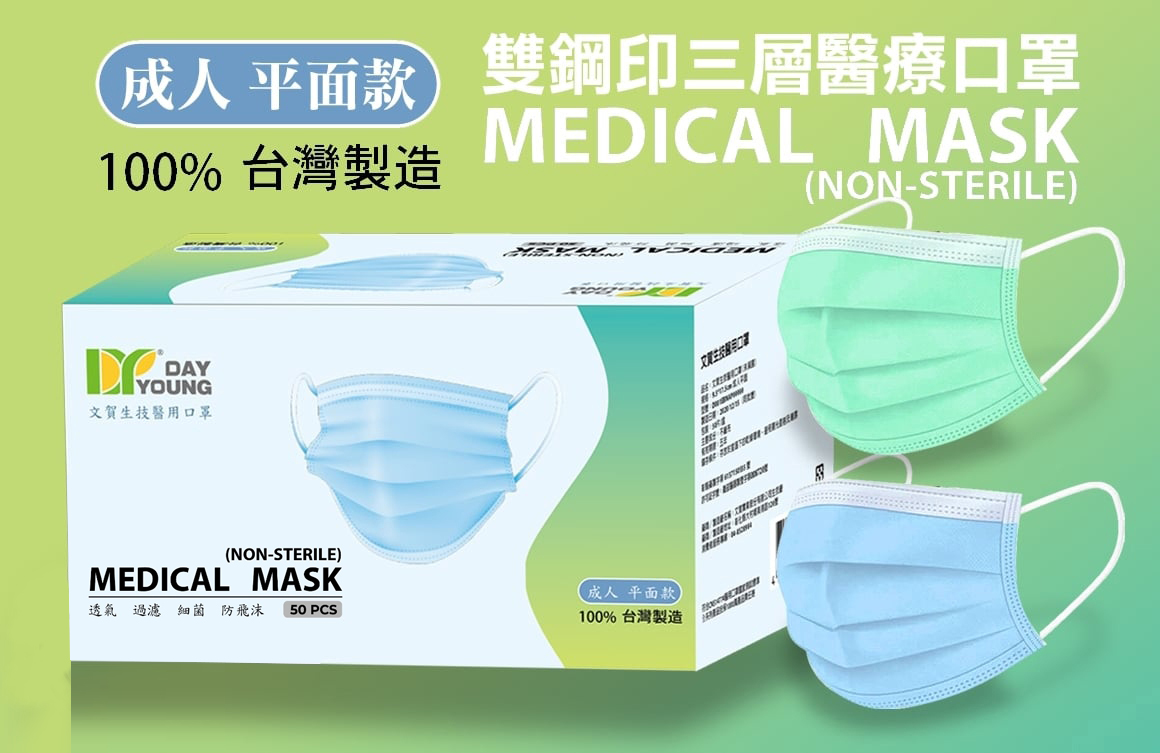 0034 台灣製造 雙鋼印三層醫用成人口罩-2盒入