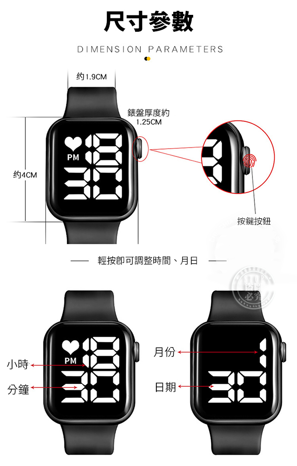 3000 時尚簡約 大錶面電子錶禮盒