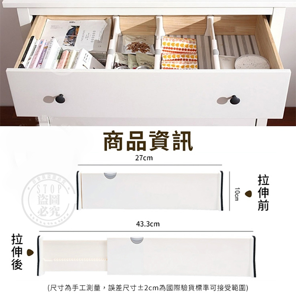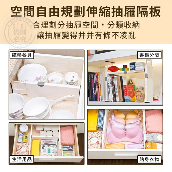 * 可伸縮抽屜隔板,配合抽屜自由伸縮你要的長度,合理劃分抽屜空間