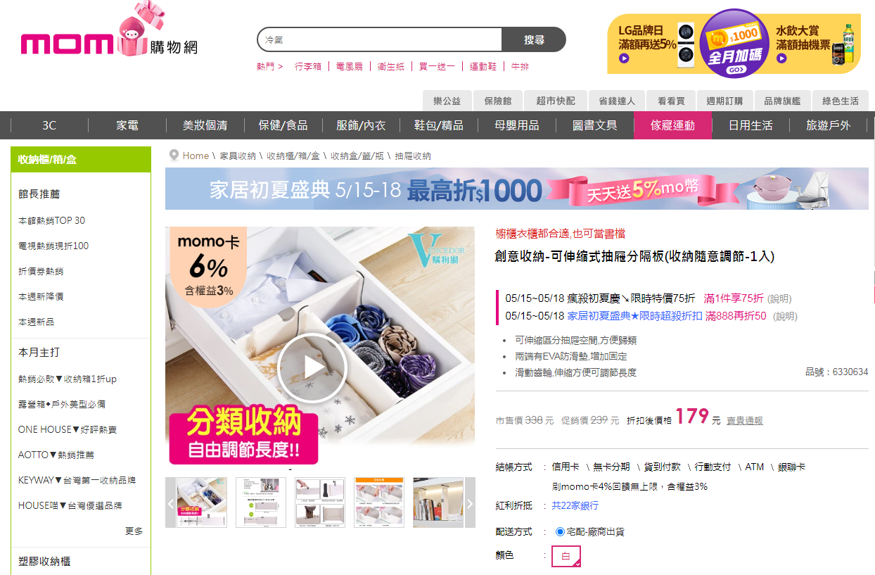 * 生活用品抽屜分隔:各種生活用品分類好,不凌亂
