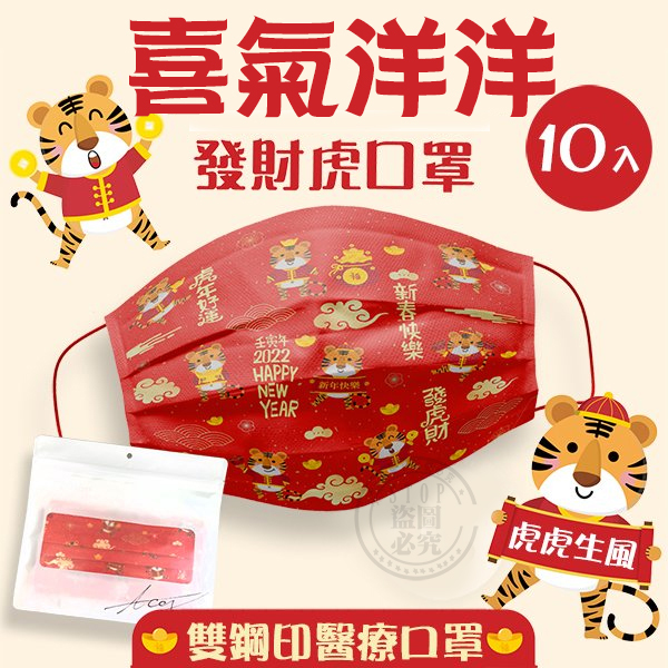 0569 台灣製造 喜氣洋洋雙鋼印口罩-10入