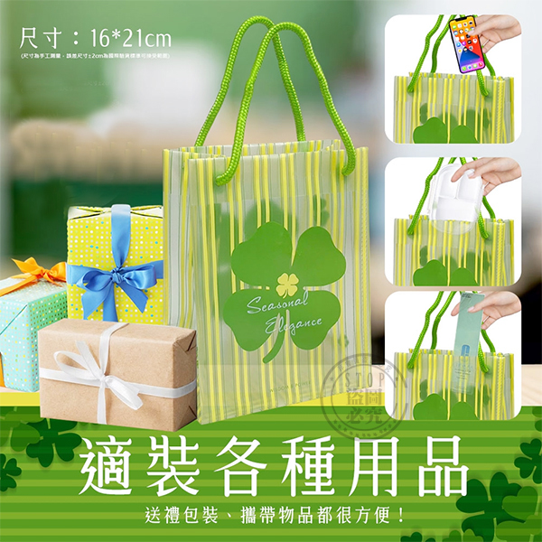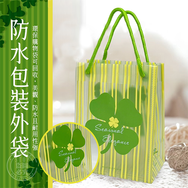 50個以上 $9元/個 * 簡約好看又耐用的幸運草包裝,為你的送禮更加分 * 防水包裝外袋,環保購物袋可回收,美觀、防水且耐用性強。 * 棉線提繩設計,不傷手,好握好提,承重力強不易斷裂! * 適裝各種用品,送禮包裝、攜帶物品都很方便! *【商品尺寸】-16*21cm 【下單前:務必"詳閱購物須知,下單視為接受"購物須知"內容】 【下單不保留商品,要結單請主動與客服聯繫】 【公司提供多種下單管道,庫存數量僅