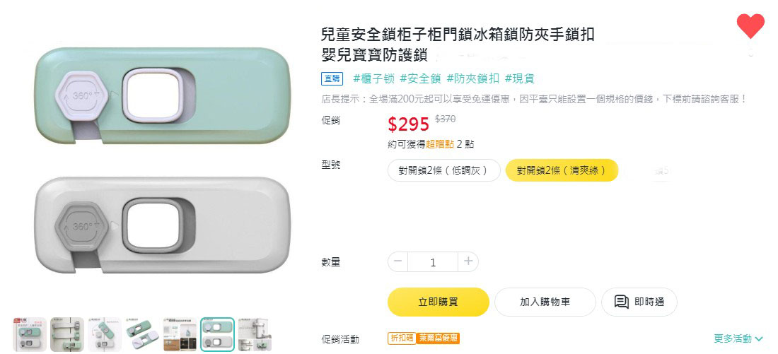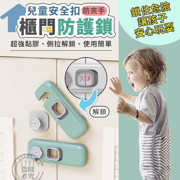 * 兒童安全扣防夾手櫃門防護鎖,360度旋鈕,一秒鎖定!