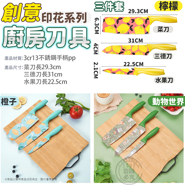 5組以上 $ 80元/組 市價:229元 *創意印花系列廚房刀具三件套,精緻廚房,從刀具開始 *切肉、切蔬菜、切水果一套搞定 *印花設計,優選不銹鋼材質,刃口鋒利,耐用 *手柄磨砂防滑,手感舒適 *顏色依實際到貨為主 *刀身印花有疊色屬正常現象 【下單前:務必"詳閱購物須知,下單視為接受"購物須知"內容】 【下單不保留商品,要結單請主動與客服聯繫】 【公司提供多種下單管道,庫存數量僅供參考,實際數量請洽小幫手】