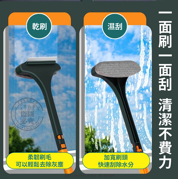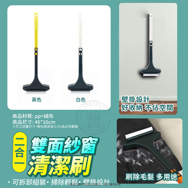 * 乾濕兩用,一面刷兩面淨,這一支就能清潔紗窗灰塵,