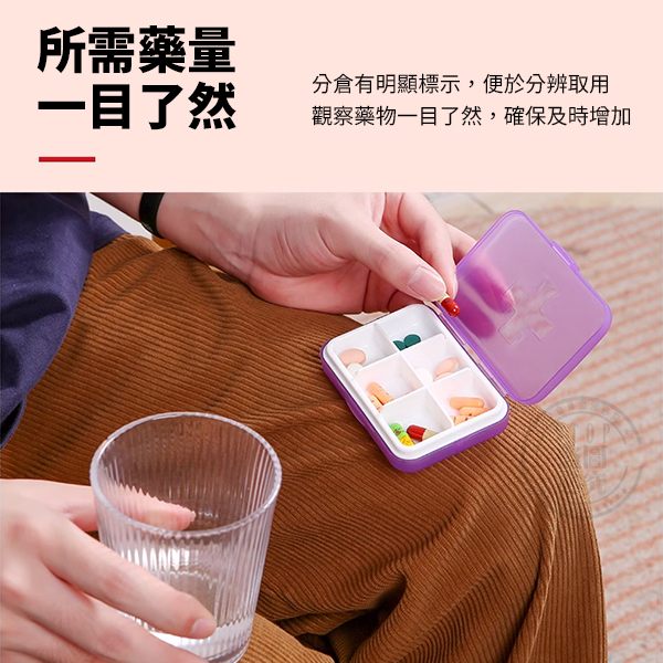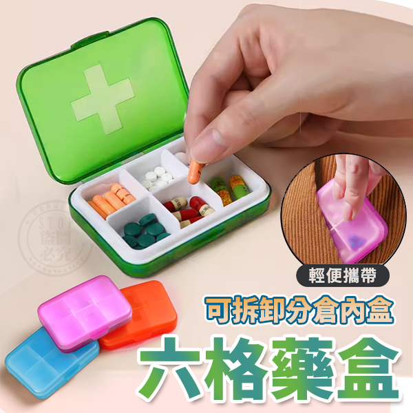 * 六格分格收納設計,讓藥物不混在一起,方便拿取!