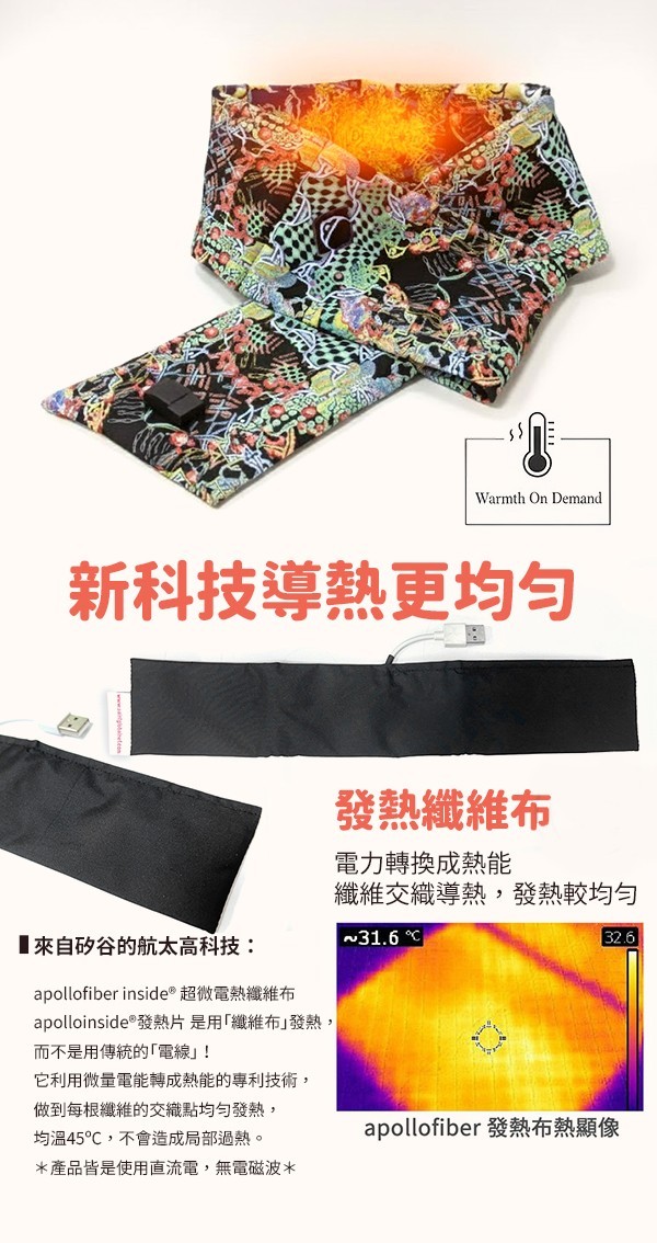 * 發熱圍巾 內USB發熱片,具有遠紅外線能量的超微電熱纖維布