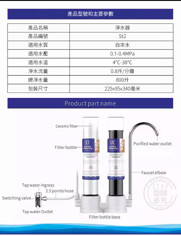 4456 家用自來水過濾器 台式陶瓷芯+活性碳雙濾